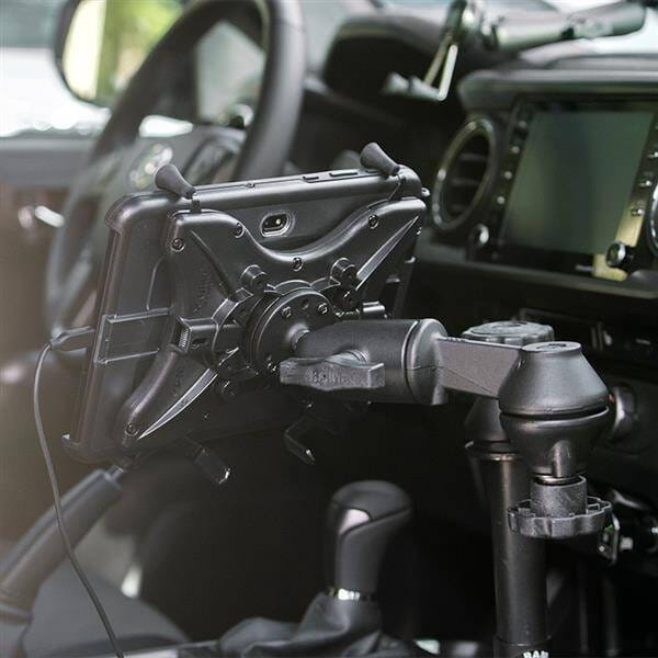 Uniwersalny uchwyt RAM X-Grip do tabletów 9"-10" ma konstrukcję w kształcie litery „X”, która rozszerza się i kurczy, zapewniając idealne dopasowanie do urządzenia, nawet jeśli jest ono w etui. W zestawie znajdują się łatwo dostępne pokrętła znajdujące się z tyłu podstawki, umożliwiające szybkie zwolnienie tabletu. Bez względu na to, z jakim ramieniem z podwójnym gniazdem i podstawą montażową sparujesz RAM X-Grip, technologia RAM Ball and Socket pozwala na niemal nieskończoną regulację w celu uzyskania idealnego kąta widzenia, jednocześnie przedłużając żywotność telefonu, zapewniając tłumienie wstrząsów i wibracji. Ta wersja uchwytu RAM X-Grip jest kompatybilna z tabletami o wymiarach podanych poniżej. Przy ustalaniu rozmiaru gabarytowego ważne jest zweryfikowanie wymiarów urządzenia z jego obudową, tuleją lub skórą.