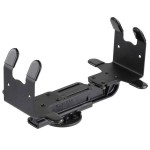 Uchwyt do przenośnej drukarki RAM wykorzystuje unikalny, oczekujący na opatentowanie mechanizm sprężynowy, który zapewnia mocne trzymanie, a jednocześnie umożliwia łatwe wyjmowanie w celu przechowywania drukarki. Na każdym końcu podstawek znajdują się boczne płytki mocujące, które zostały zaprojektowane tak, aby dokładnie przylegały do krawędzi drukarki.